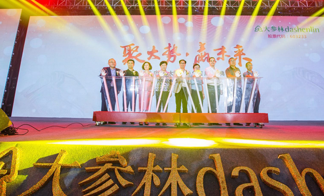 918博天娱乐旗舰药业集团董事长刘景萍女士与大参林医药集团董事长柯云峰先生、中国医药商业协会执行会长付明仲女士等嘉宾共同开启了“聚大势•赢未来"大参林工商合作峰会的大幕。